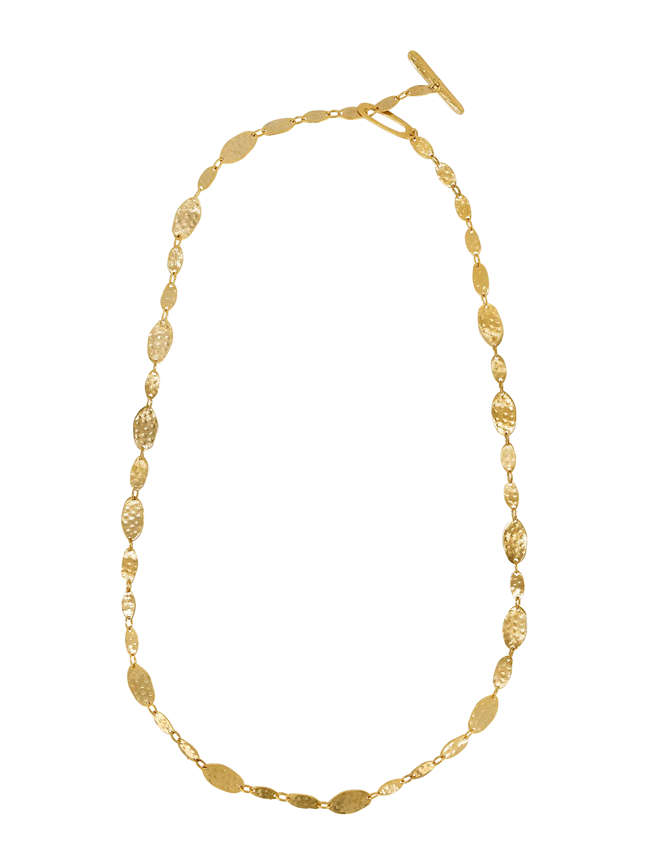 Crafted from durable Zamak—a blend of aluminum, zinc, and a gold plating—this handmade necklace/belt offers lasting shine without being gold. Measuring 1 meter and adjustable, it combines elegance with versatility. The inclusion of a small amount of nickel enhances its strength, though those with sensitive skin should wear it cautiously. Designed to accompany you for a long time, this piece balances beauty and resilience with expert craftsmanship.