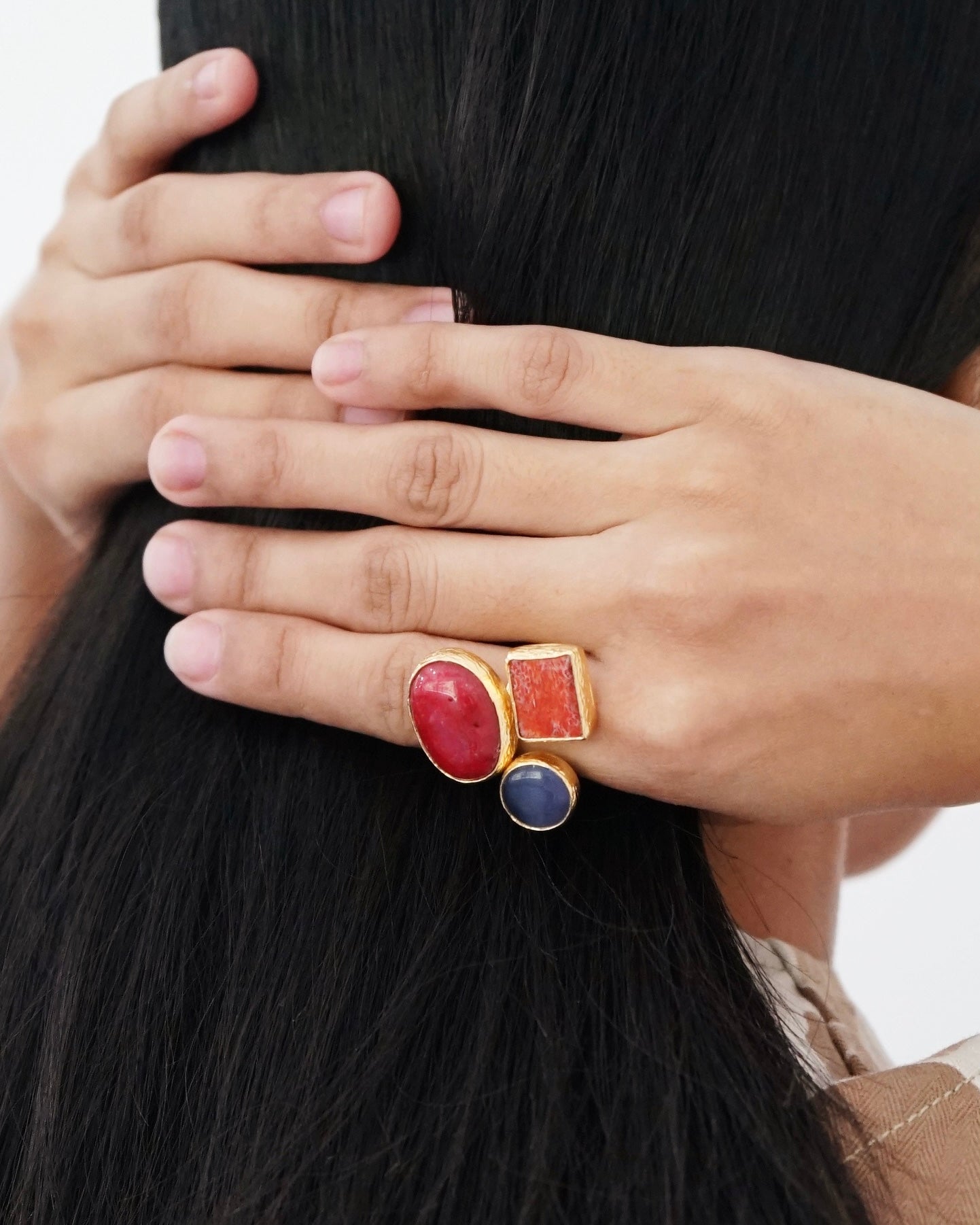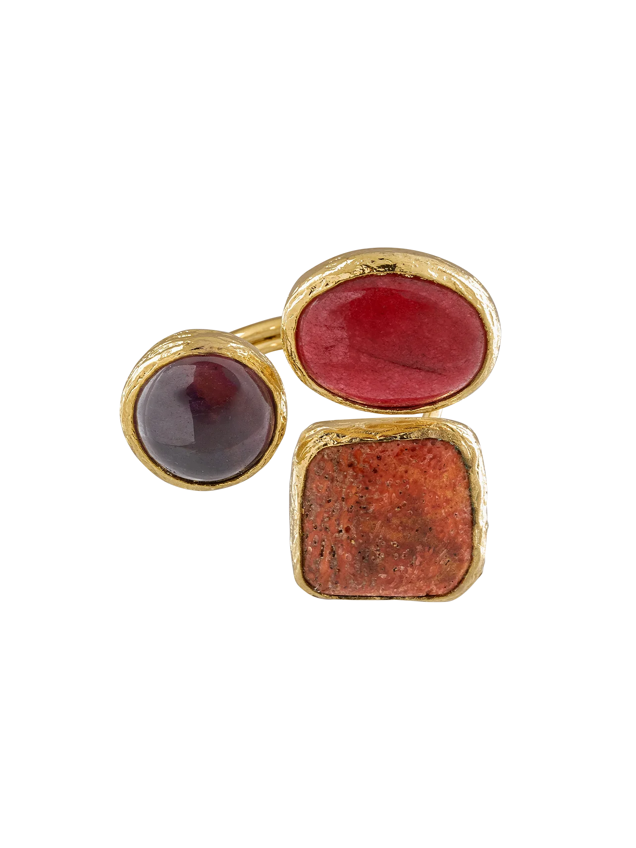 The Avant-garde Red Ring, meticulously handcrafted from gold-plated brass and adorned with natural stone, symbolizes acceptance and the power to make life’s decisions. Its adjustable, one-size-fits-all design ensures a comfortable and personalized fit. This exclusive piece combines elegance and meaning, ideal for those who appreciate fine craftsmanship and a style with purpose.