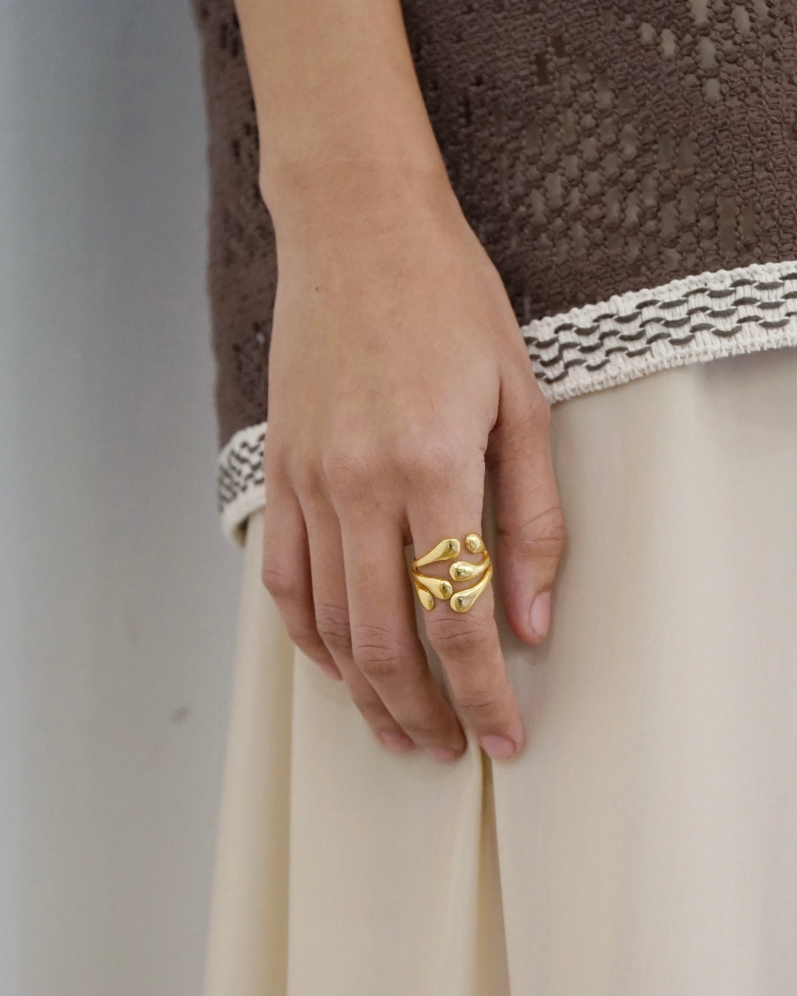 The Bulerias Ring, a signature piece by Susmie's, is expertly crafted from Zamak, a robust alloy of aluminum and zinc, enhanced with a gold plating. It contains a small amount of nickel to increase durability and longevity. Individuals with sensitive or allergy-prone skin are advised to wear this ring cautiously and limit prolonged contact.