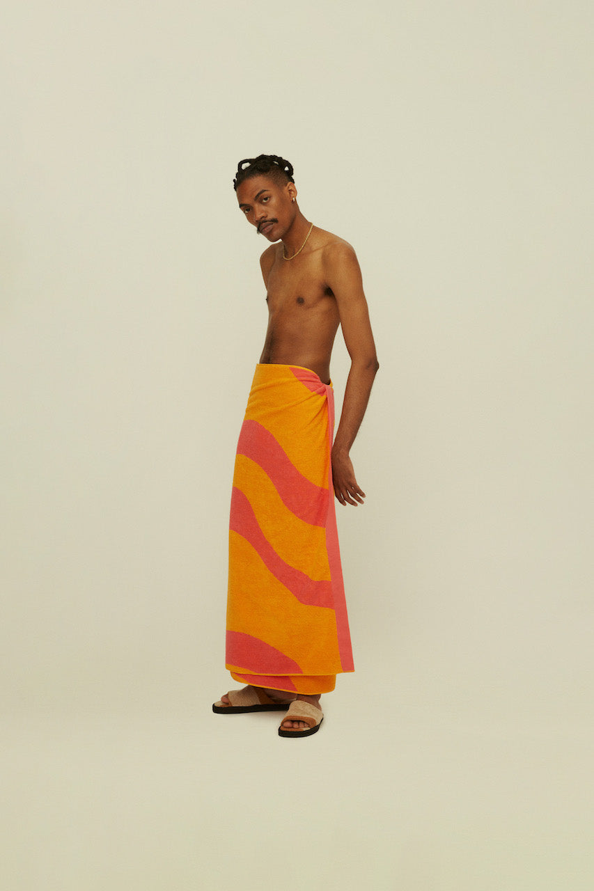 The Pink Flow towel by Swedish brand OAS is made from highly absorbent jacquard-woven cotton-terry.