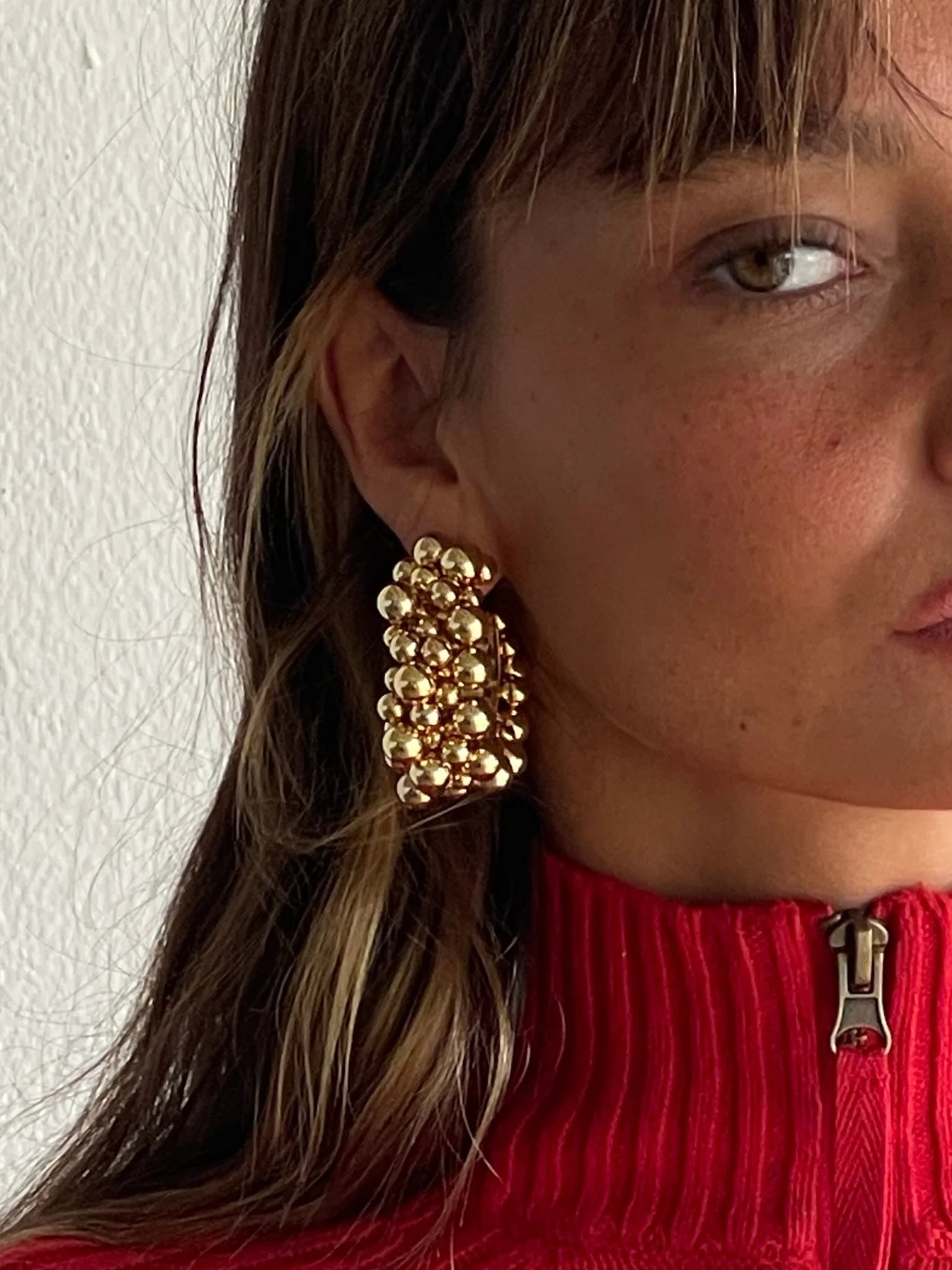 These Rulos and Rumors Earrings capture the essence of joyful post-summer salon chats. Crafted from durable Zamak—a blend of aluminum, zinc, and a touch of nickel for added strength—these earrings feature a gold plating that adds elegance. While designed for lasting wear, those with sensitive skin should use them cautiously and avoid prolonged contact. Perfect for adding a subtle yet sophisticated touch to your look, these earrings embody both style and resilience.