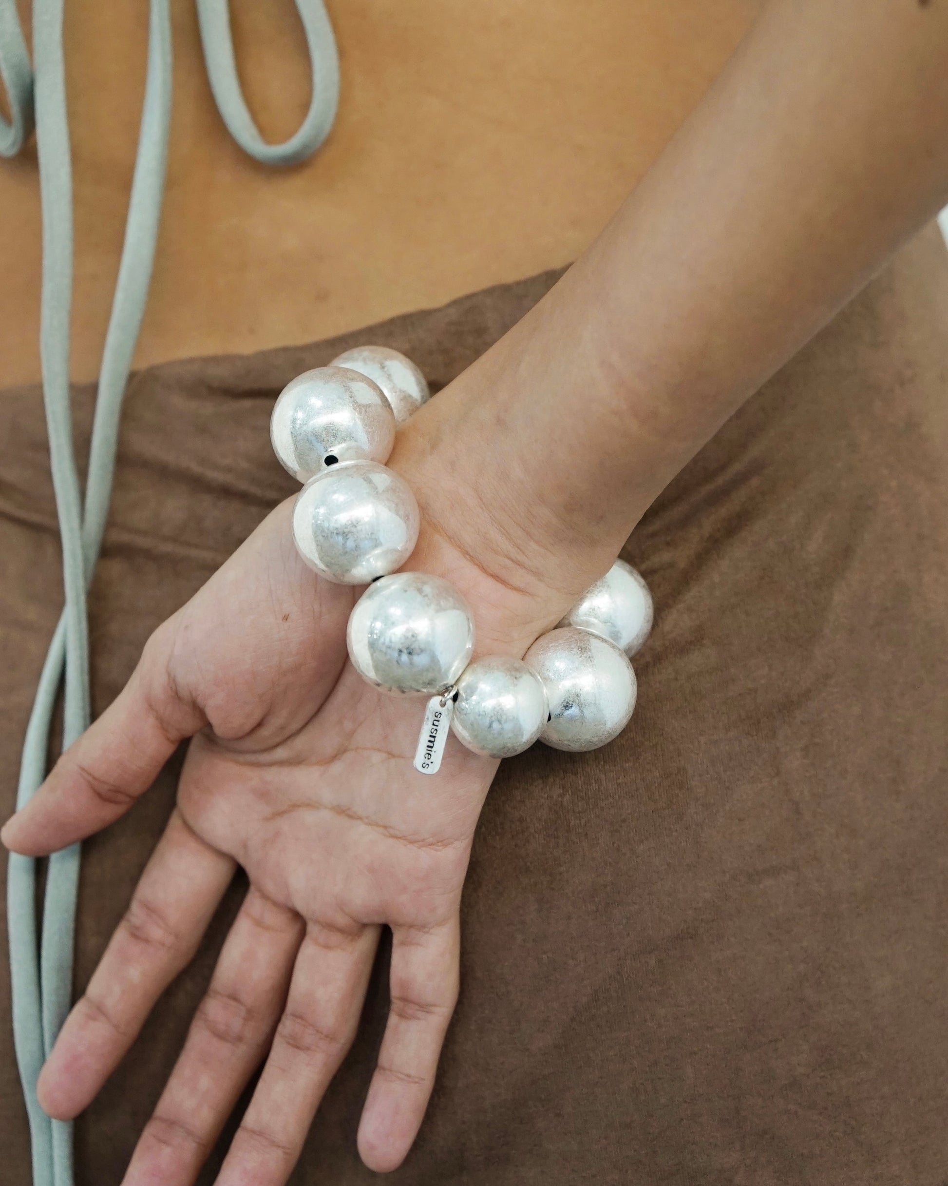 The Snowball Silver Bracelet, crafted from 100% latón, offers a radiant sparkle that effortlessly transitions from day to night wear. This piece combines durability with timeless style, making it a refined addition to any jewelry collection.