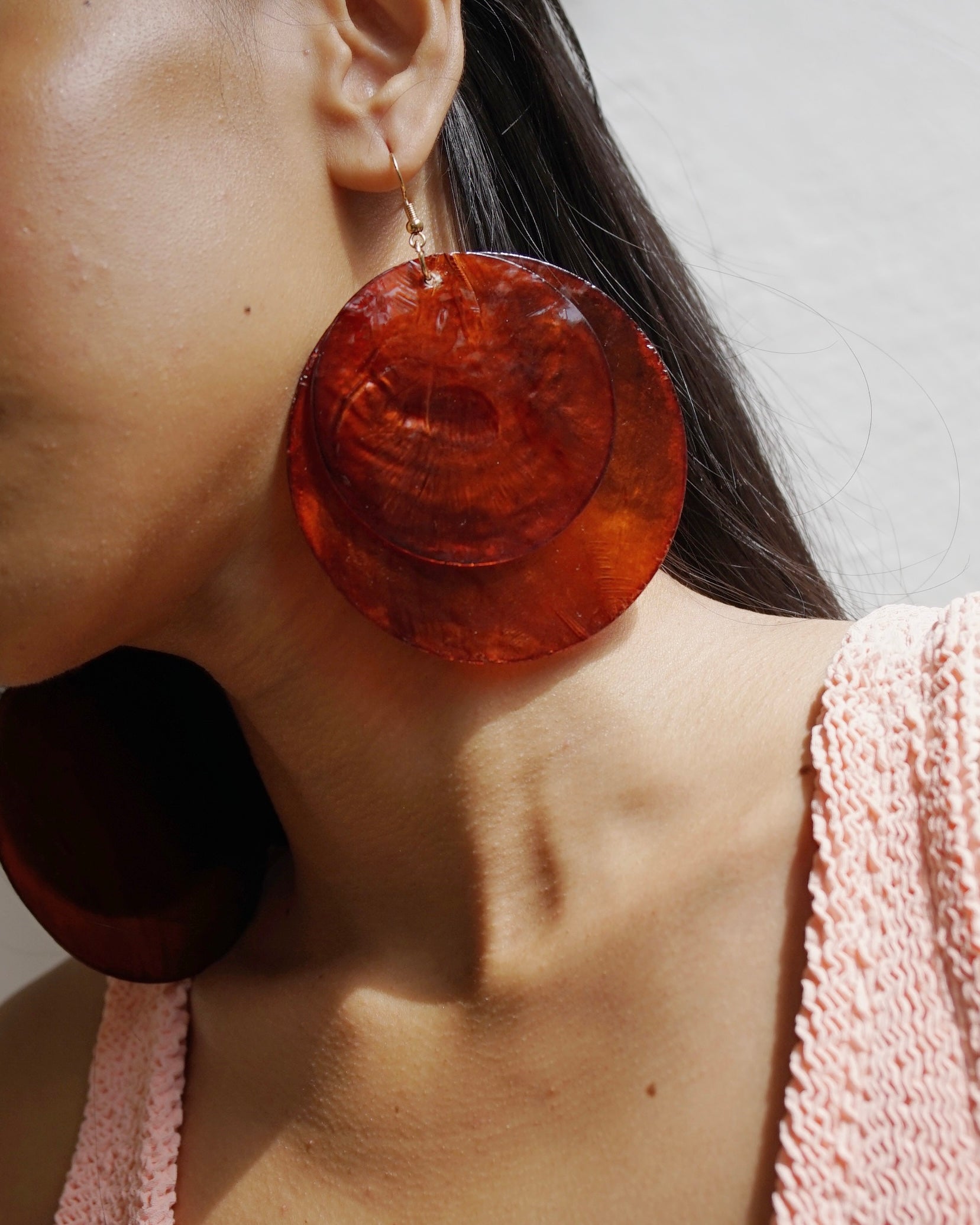 Teresa Brown Earrings are expertly crafted from radiant nacar, capturing the warm, natural glow reminiscent of the Mediterranean sun. Composed of 90% shell and 10% iron, these earrings combine elegance with durability. Perfect for adding a sophisticated touch to any ensemble.