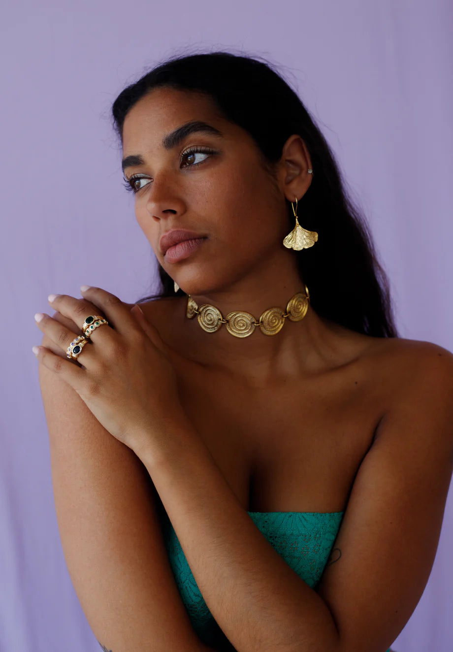The Twisted Girl Choker is crafted from durable Zamak, an alloy of aluminum and zinc with a gold plating that offers a radiant shine without being real gold. Enhanced with a small amount of nickel, it ensures added strength and longevity. Ideal for those with sensitive skin. This choker combines style and resilience, designed to be a lasting accessory in your collection.