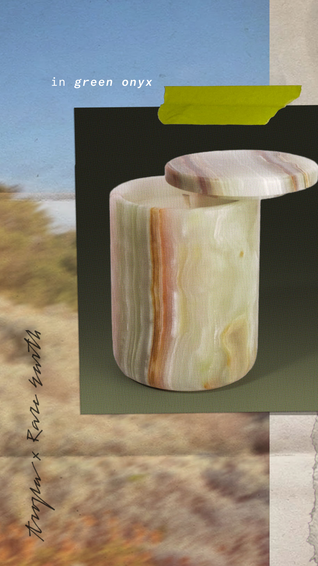 Introducing a new addition to the Tropa Home collection, crafted in collaboration with Rare Earth. Wish You Were Here features a captivating blend with an evergreen foundation, enriched by eucalyptus and Japanese woods. This candle provides a sensory journey that recalls distant landscapes and intimate memories. Presented in a green onyx vessel that glows translucently when lit, each piece showcases unique natural variations. Experience Rare Earth’s signature notes of Eucalyptus Clouds, Lightning Green Moss, Juniper Brush, Cedar, and Sandalwood on Pillowy Mush — each candle weighing 225 grams.