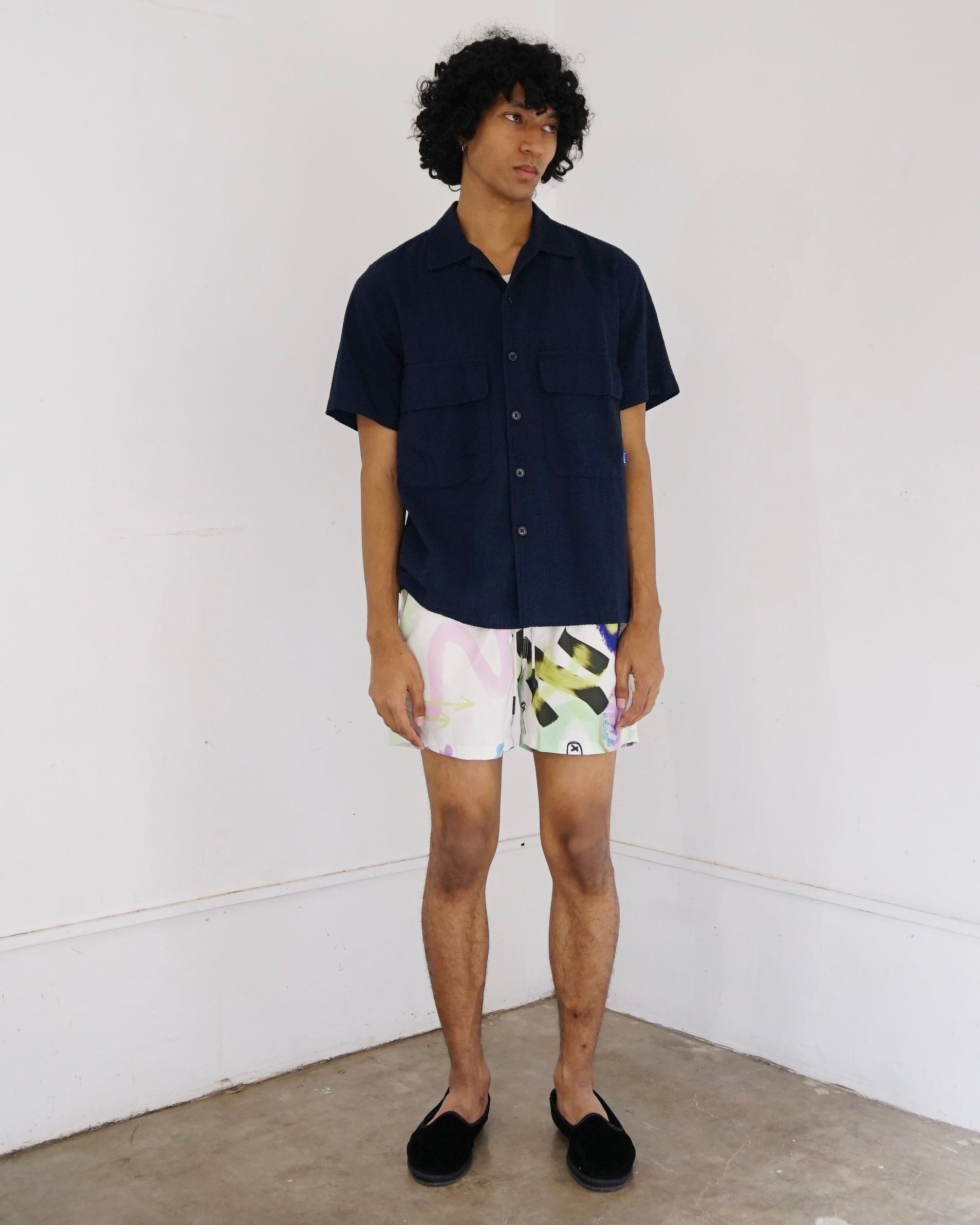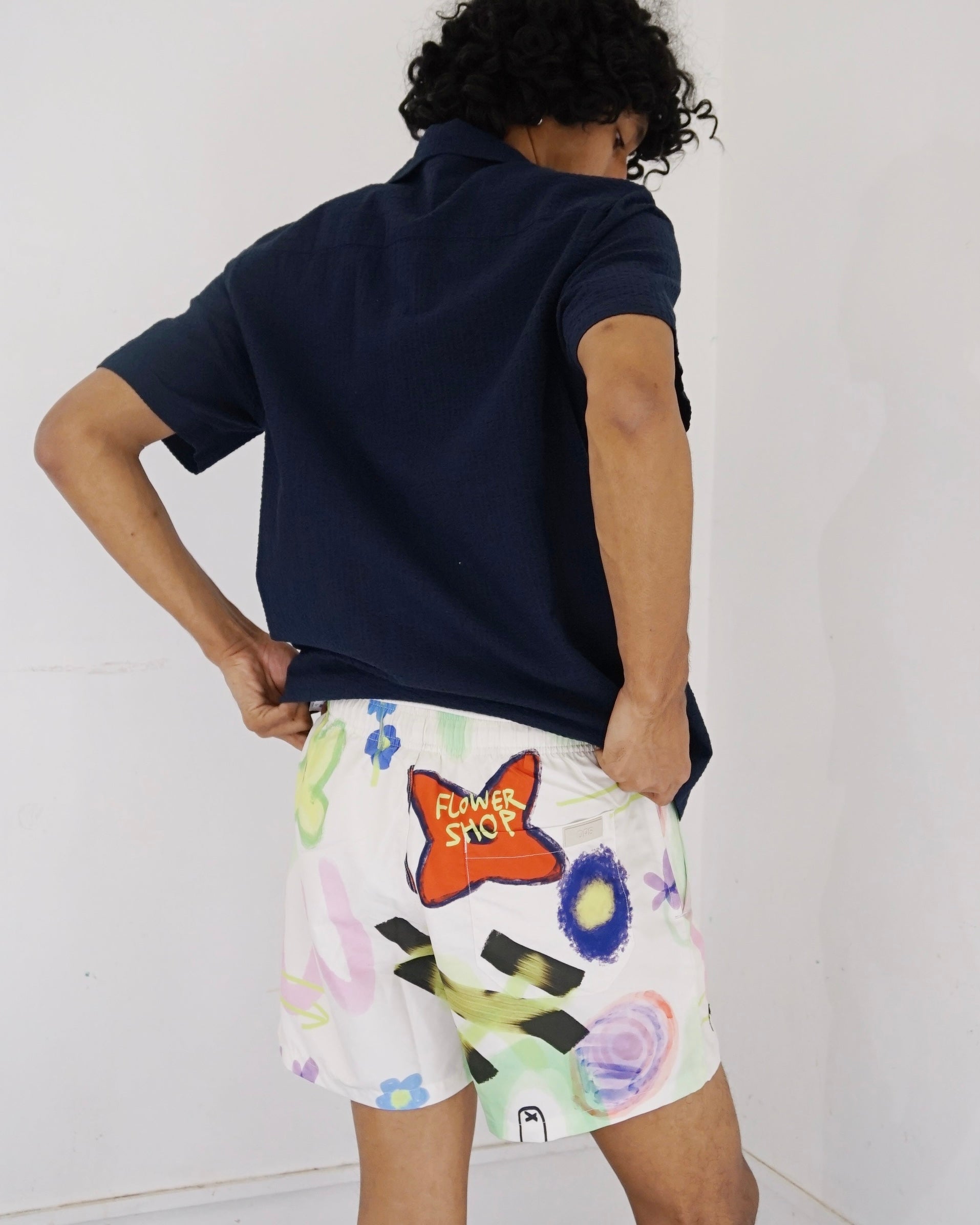 The Flower Shop swim shorts from Swedish brand OAS are tailored from a brushed, quick-drying printed shell fabric. Cut for a relaxed, straight fit with an elasticized drawstring waistband and built-in mesh briefs, two front pockets and a hidden zip pocket.