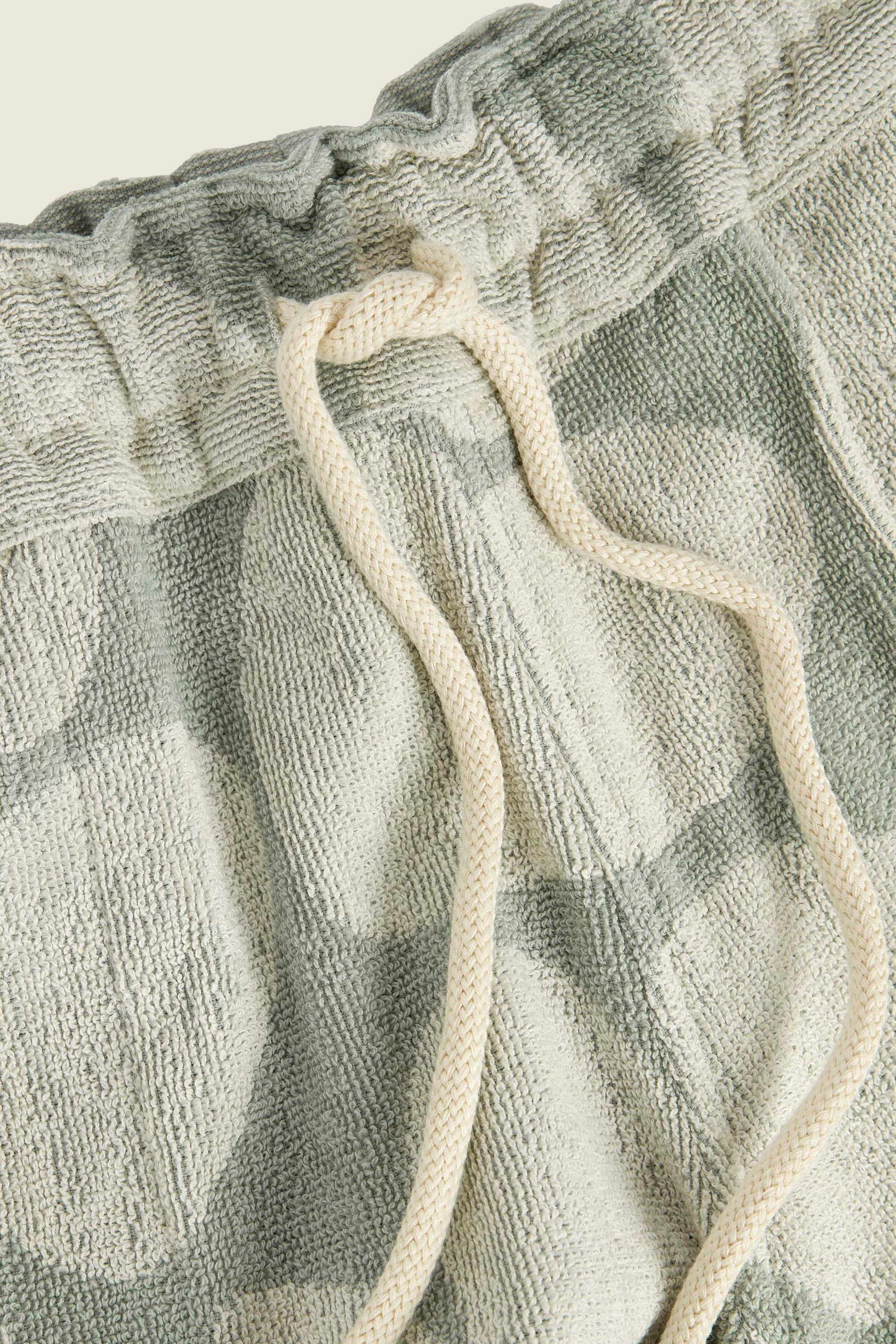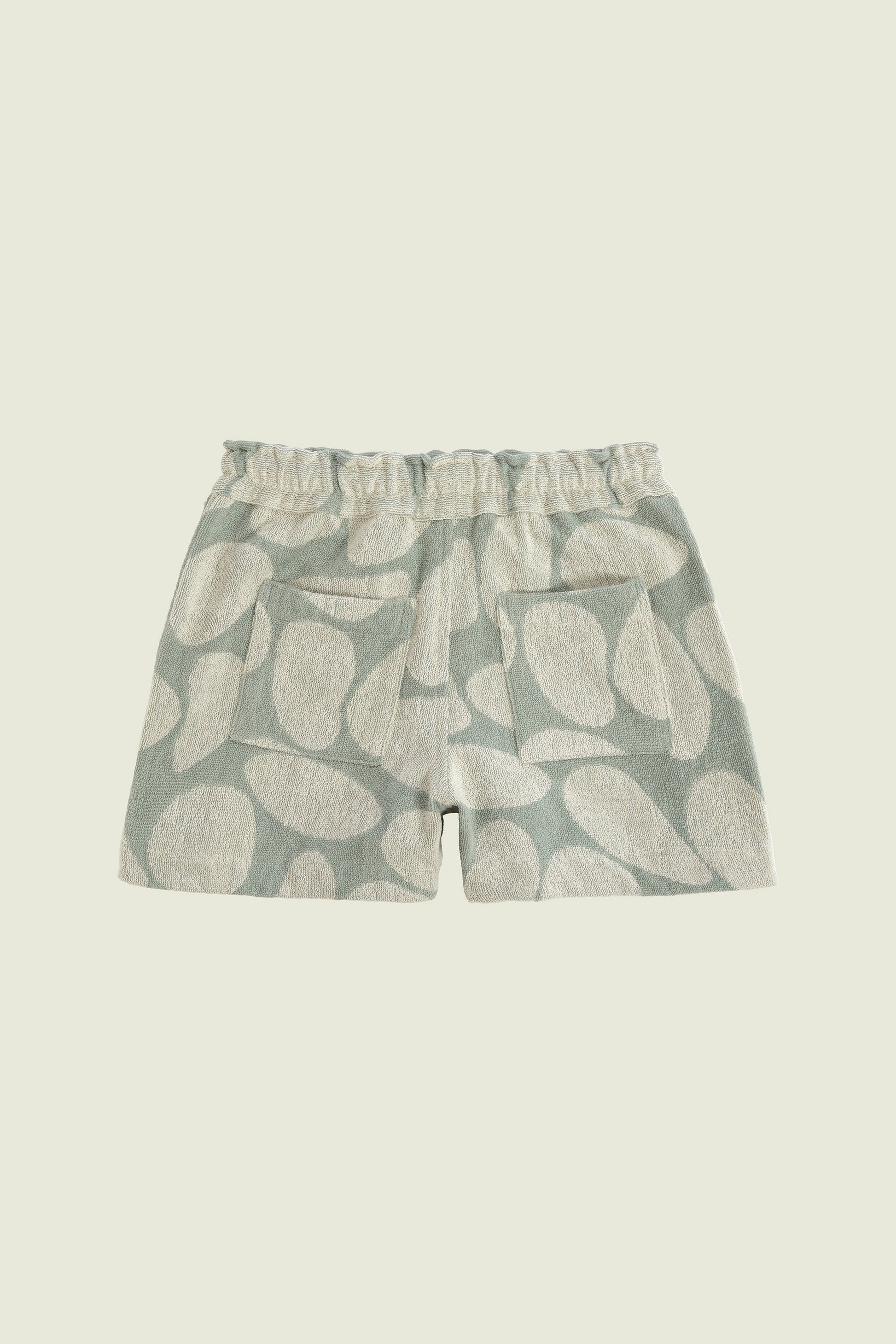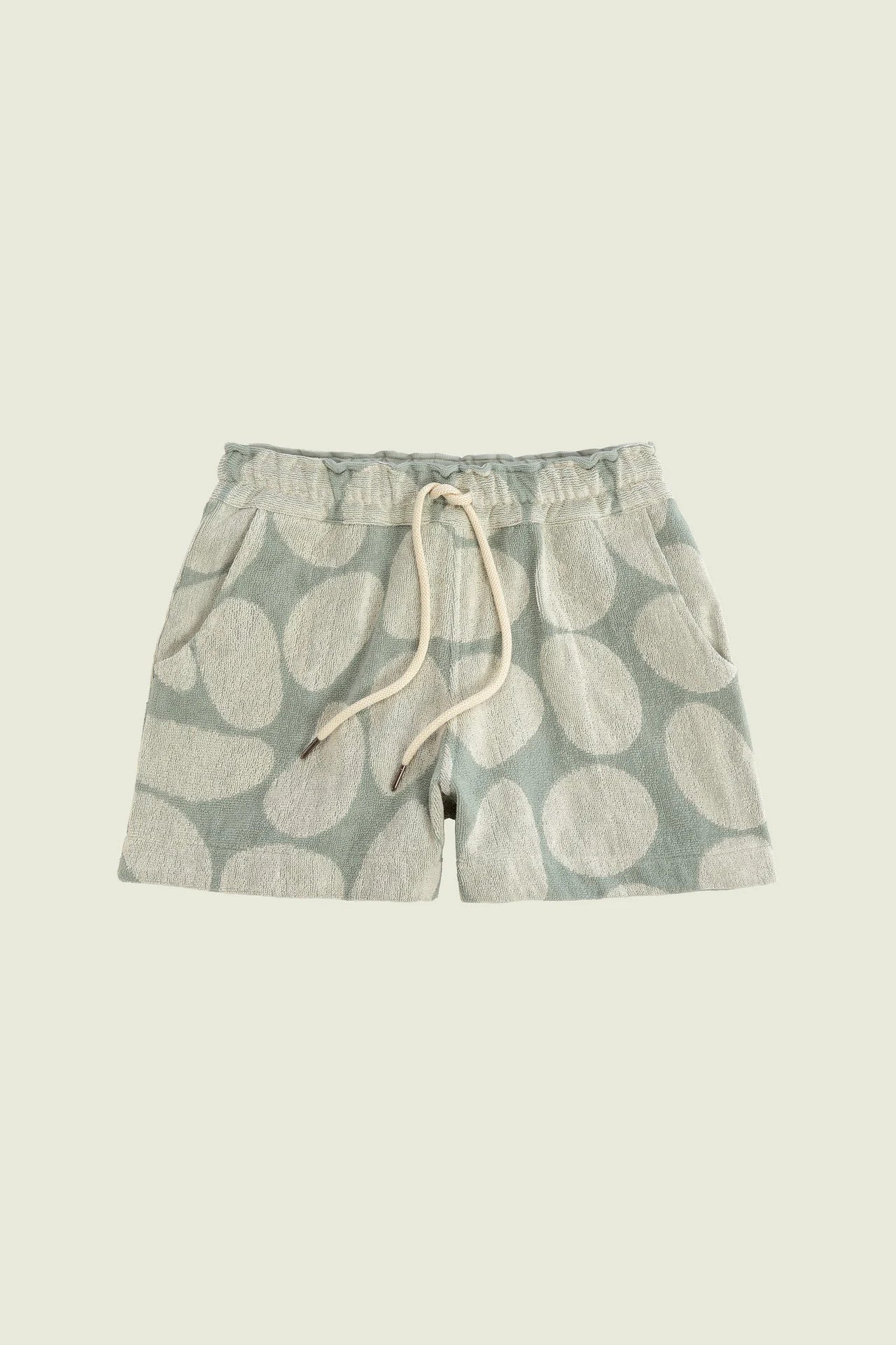 The Pebble Drizzle Terry Shorts are jacquard-woven from midweight cotton terry, offering a luxuriously soft and breathable feel. The textured pattern is created through a placement design. Perfect for wearing over swimwear or paired with the matching terry shirt.