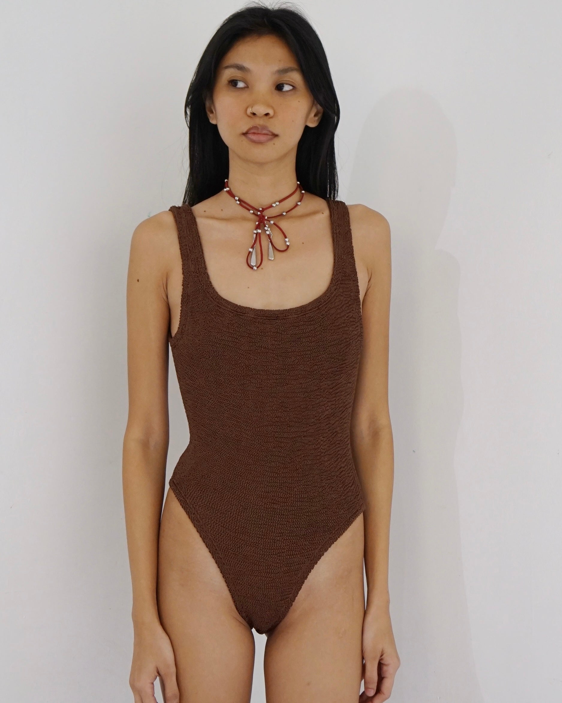 Square Neck Swim Metallic Chocolate