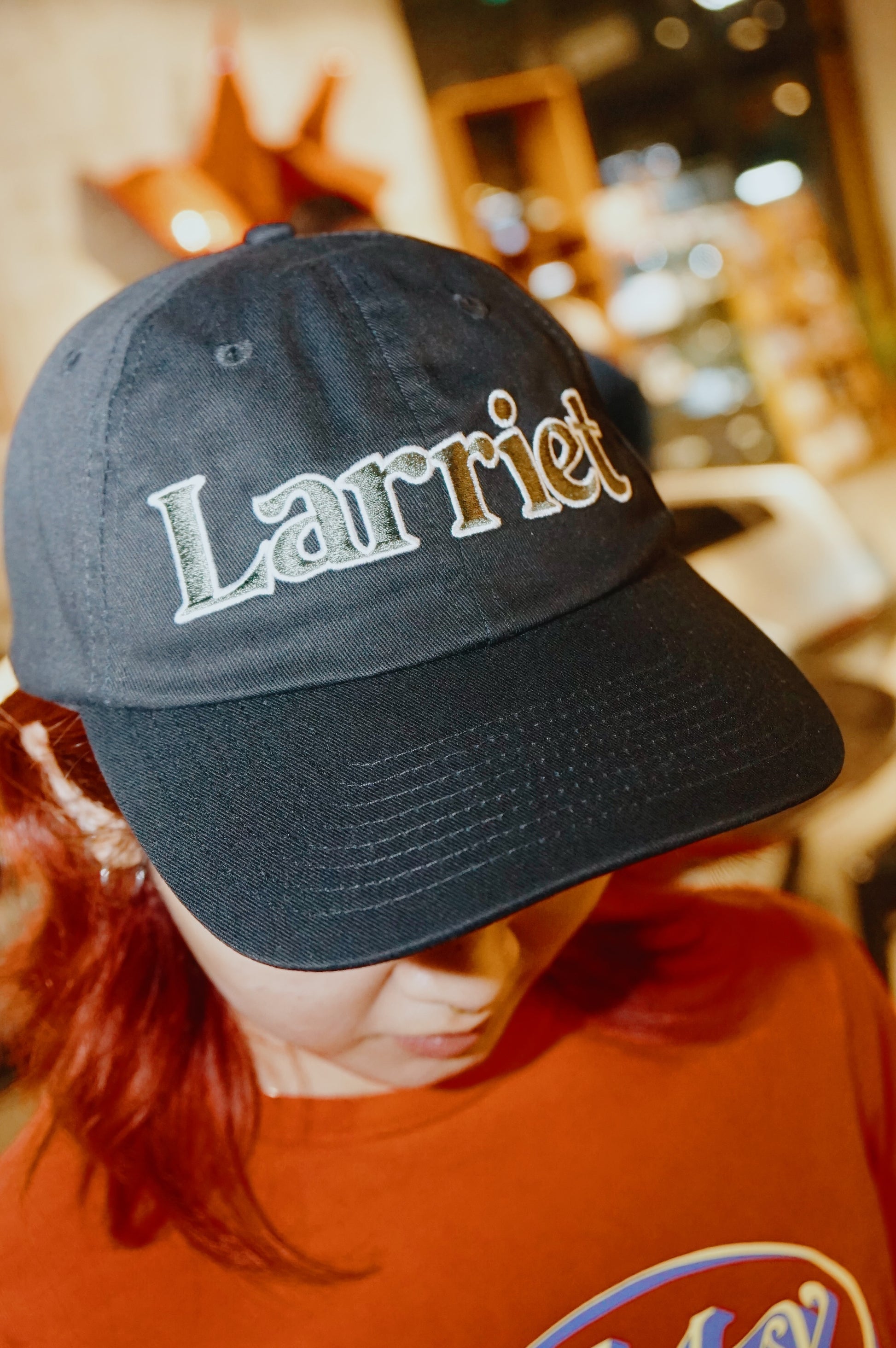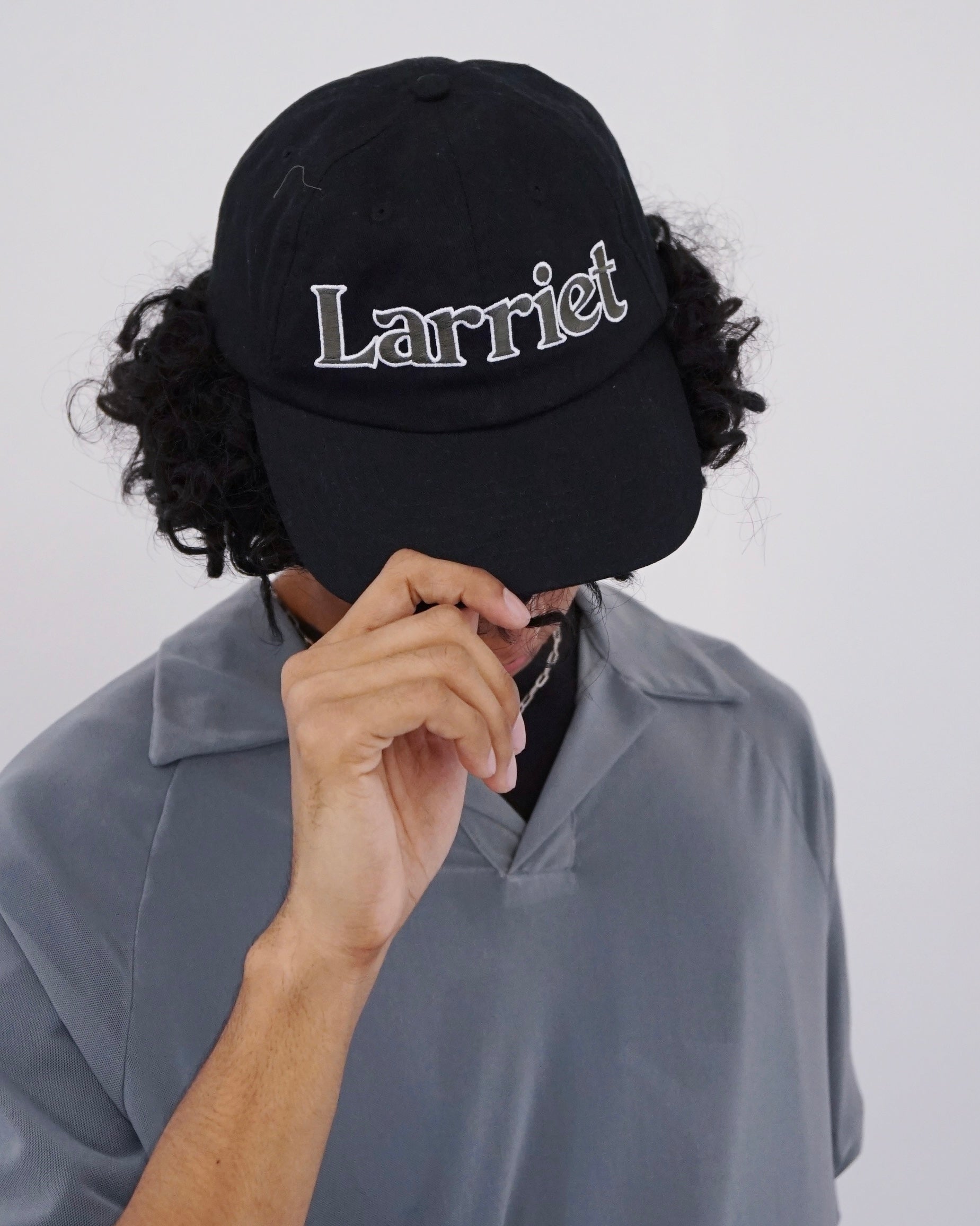 The Rubicon Cap is crafted from cotton twill and features embroidered patch artwork. It boasts a six-panel construction with a shallow fit, a slightly curved brim, and a strap-back closure with a metal clasp, along with a Larriet woven label. Designed by Australian brand Larriet.