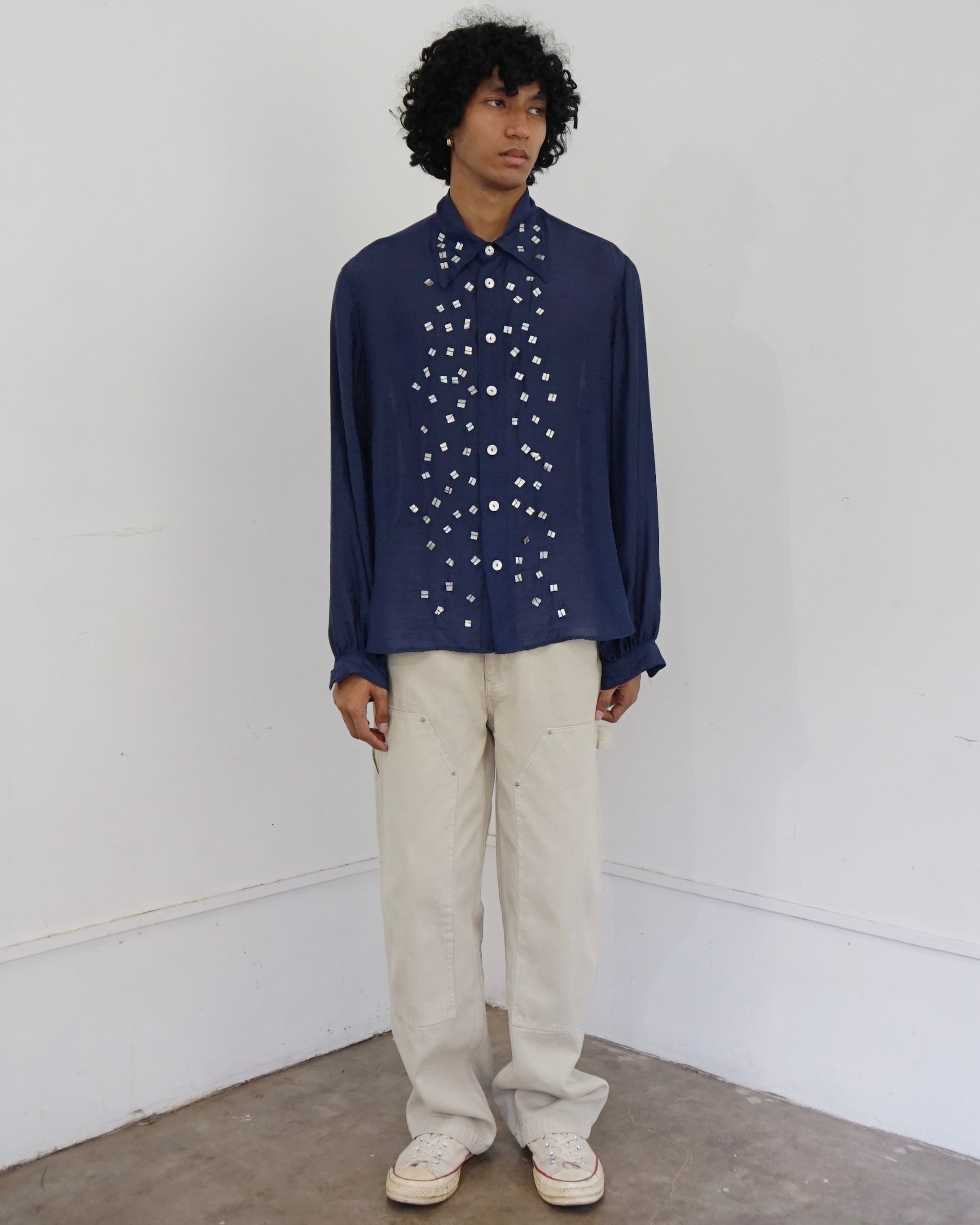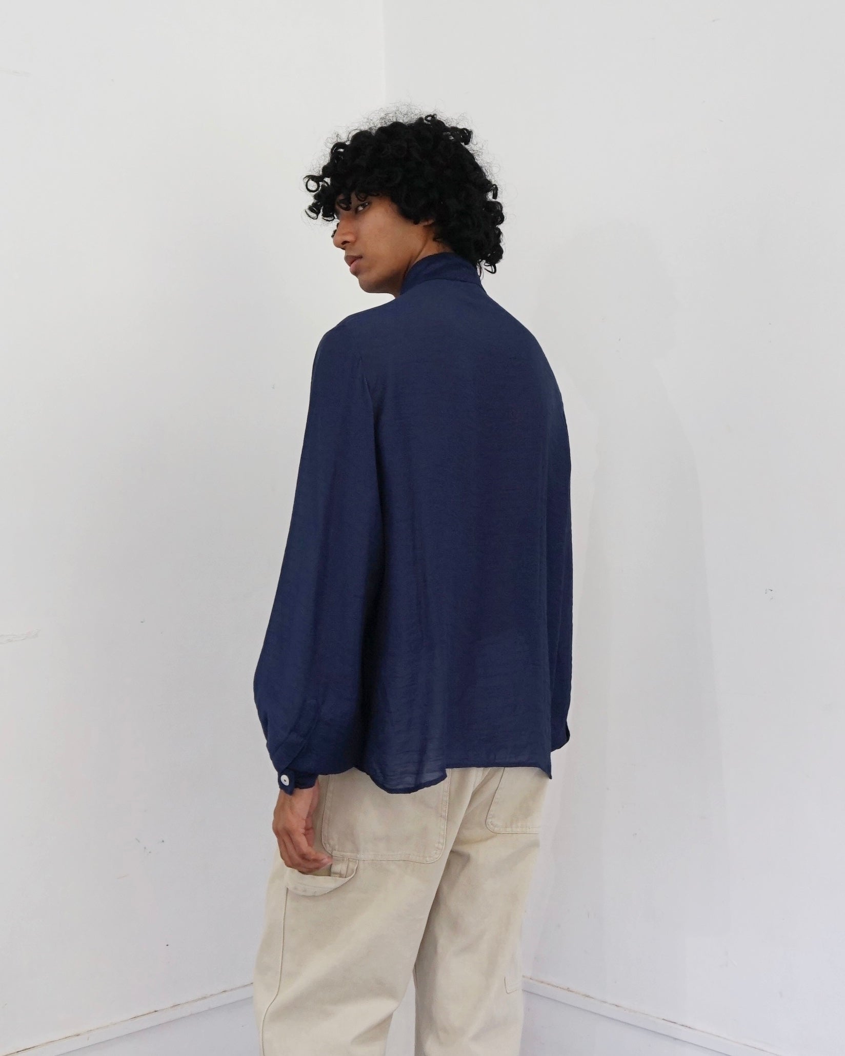 Crafted from premium piña fabric, the Thresher Shirt in Indigo Blue features delicate seashell buttons and subtle accents that highlight its artisanal quality. This shirt combines traditional Filipino textile craftsmanship with refined design, offering a lightweight, breathable garment ideal for both formal and casual occasions. Its unique texture and natural fibers ensure comfort and durability, making it a sophisticated choice for those who appreciate heritage-inspired fashion.
