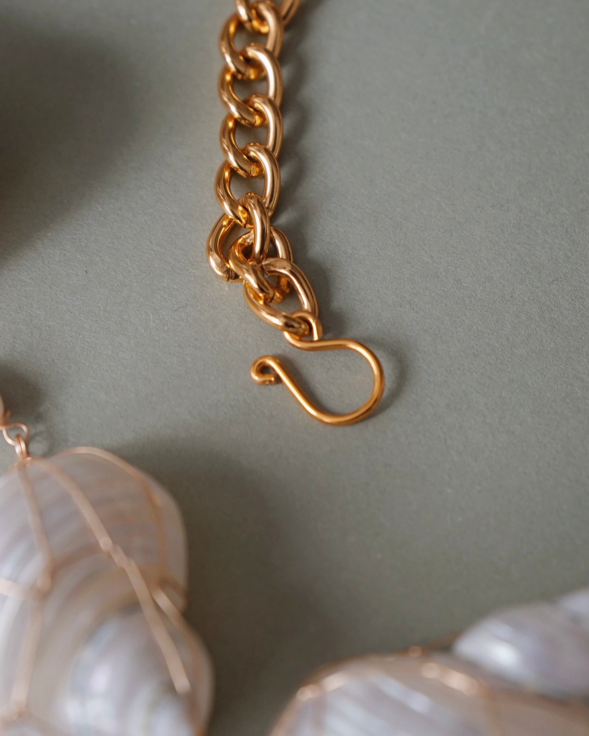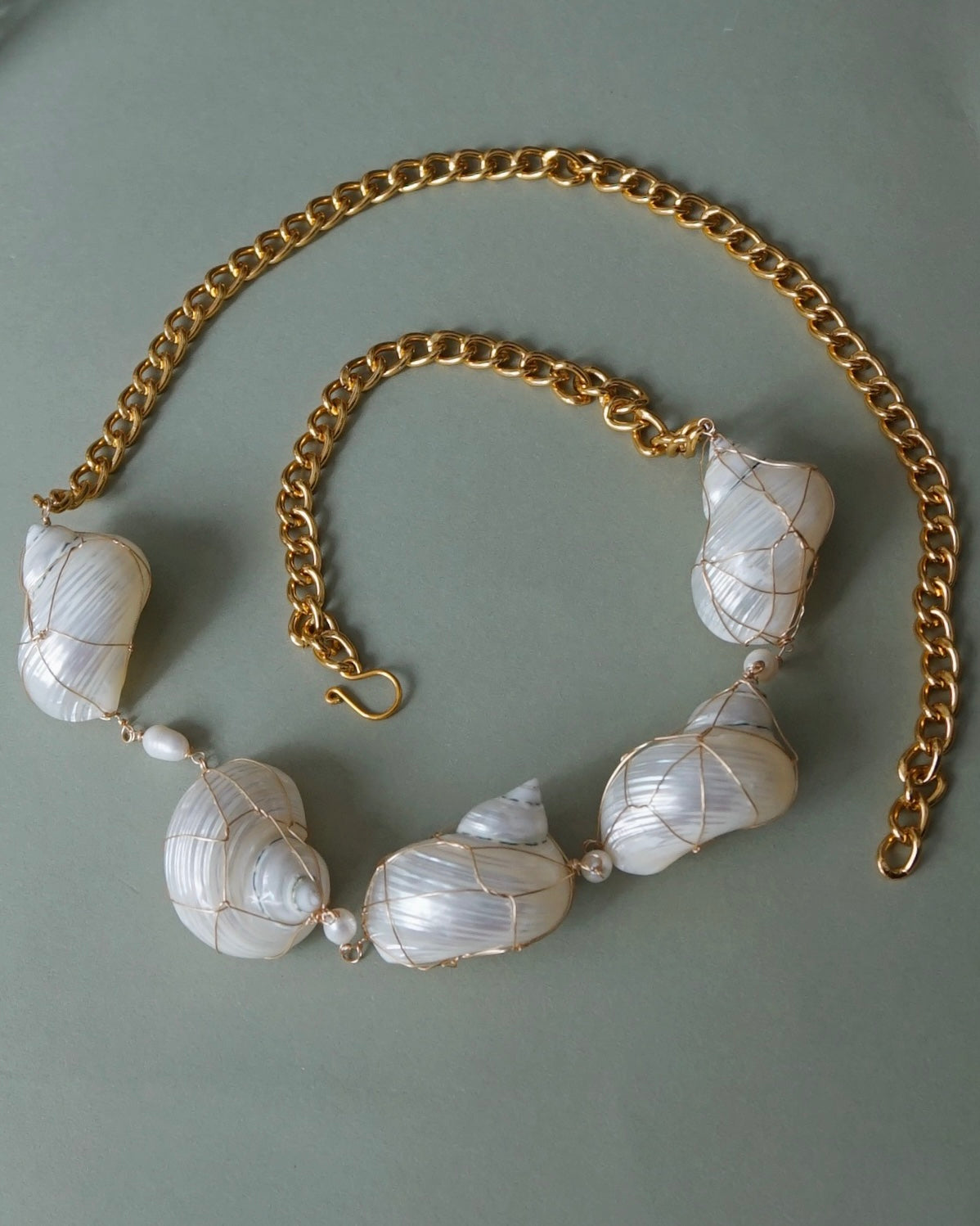 Elevate your style with the Marimar Shell Waistchain, featuring lustrous freshwater pearls delicately paired with a gold-plated chain. This expertly crafted accessory offers a refined touch to any outfit, combining natural elegance with durable, high-quality materials for lasting wear. Perfect for adding subtle sophistication to your look.