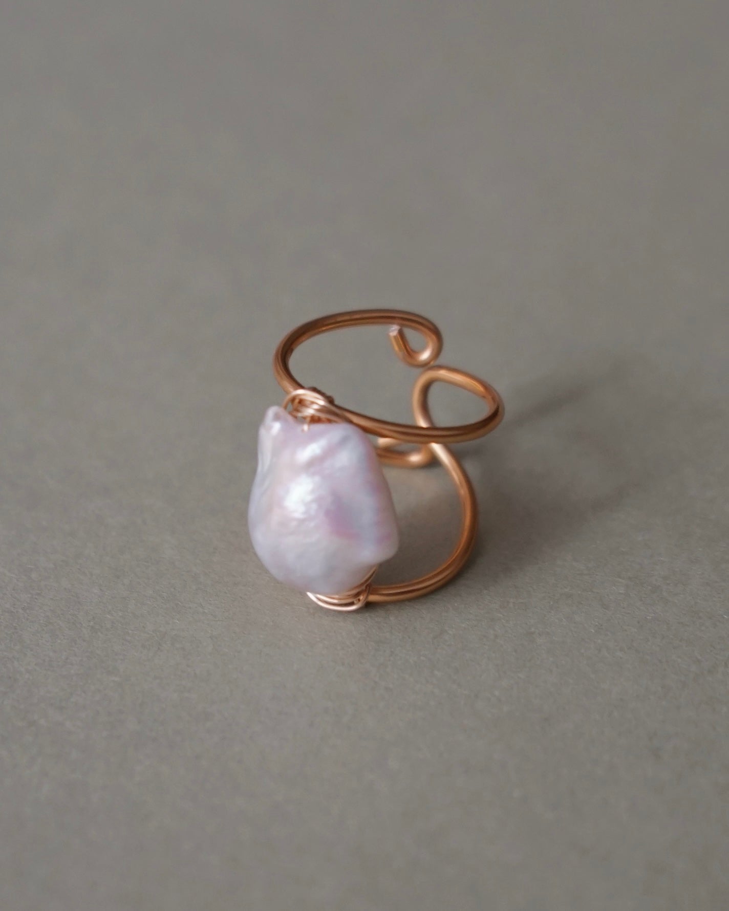 The Reyna Baroque Ring features a unique freshwater pearl delicately set on a gold-plated wire band, combining organic elegance with refined craftsmanship. Its irregular pearl shape adds a distinctive, sophisticated touch, making it an expert choice for those seeking timeless yet contemporary jewelry. Perfect for elevating both everyday and special occasion looks.