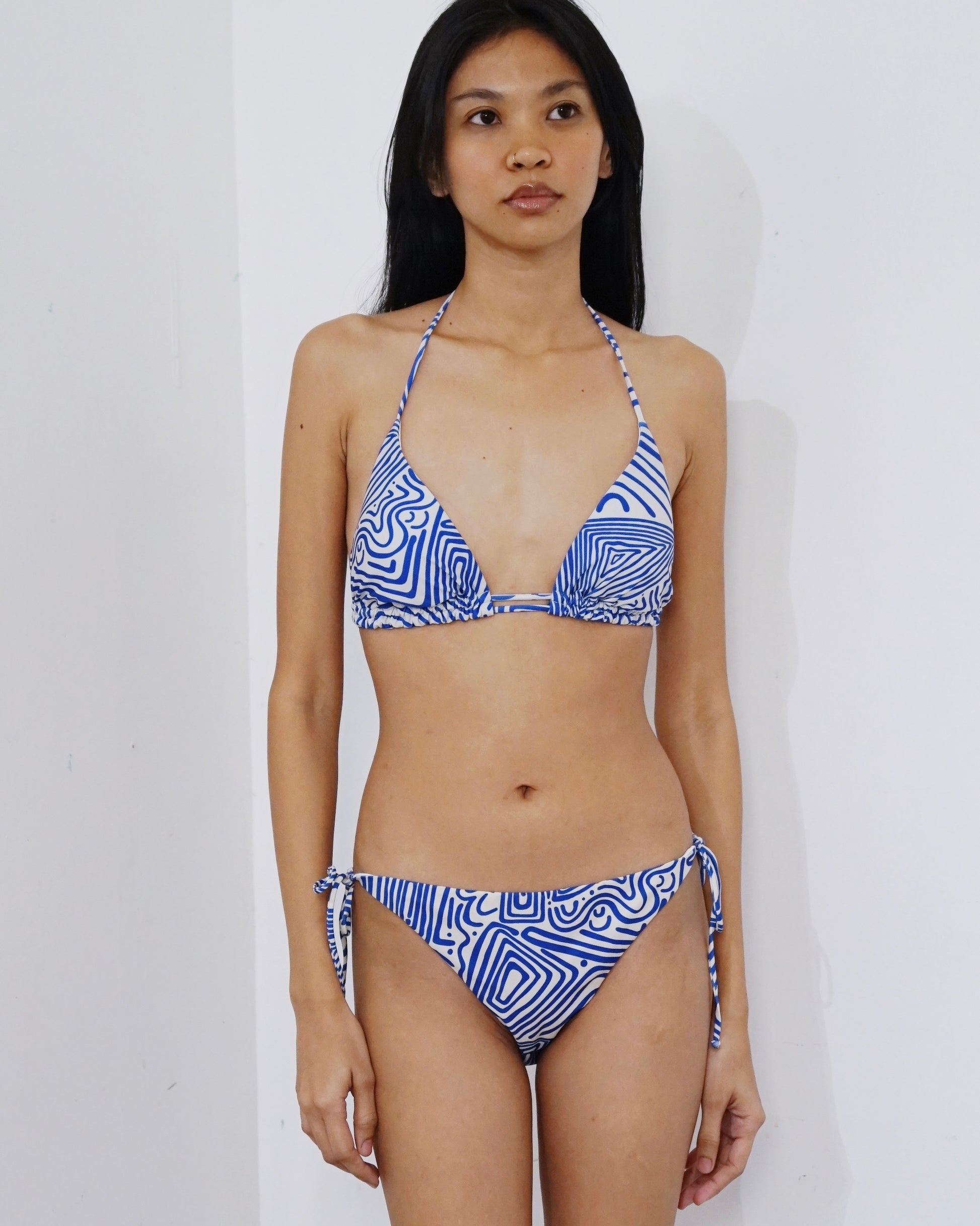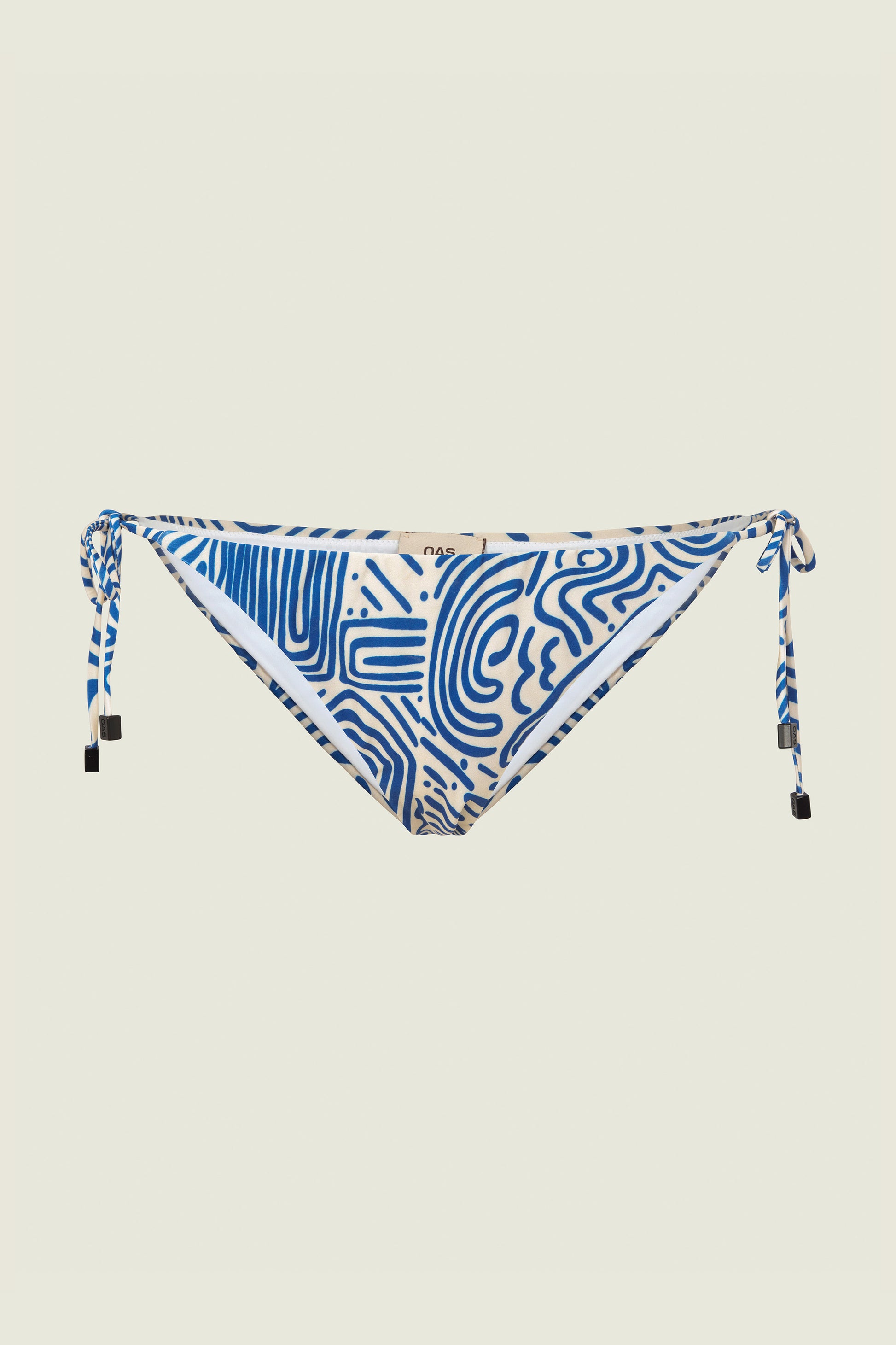 Classic side tie bikini bottom by Swedish brand OAS. The low-waisted, fully lined tanga-style bottom is finished with ties on both sides for easy adjustment and a scrunch detail in the back.