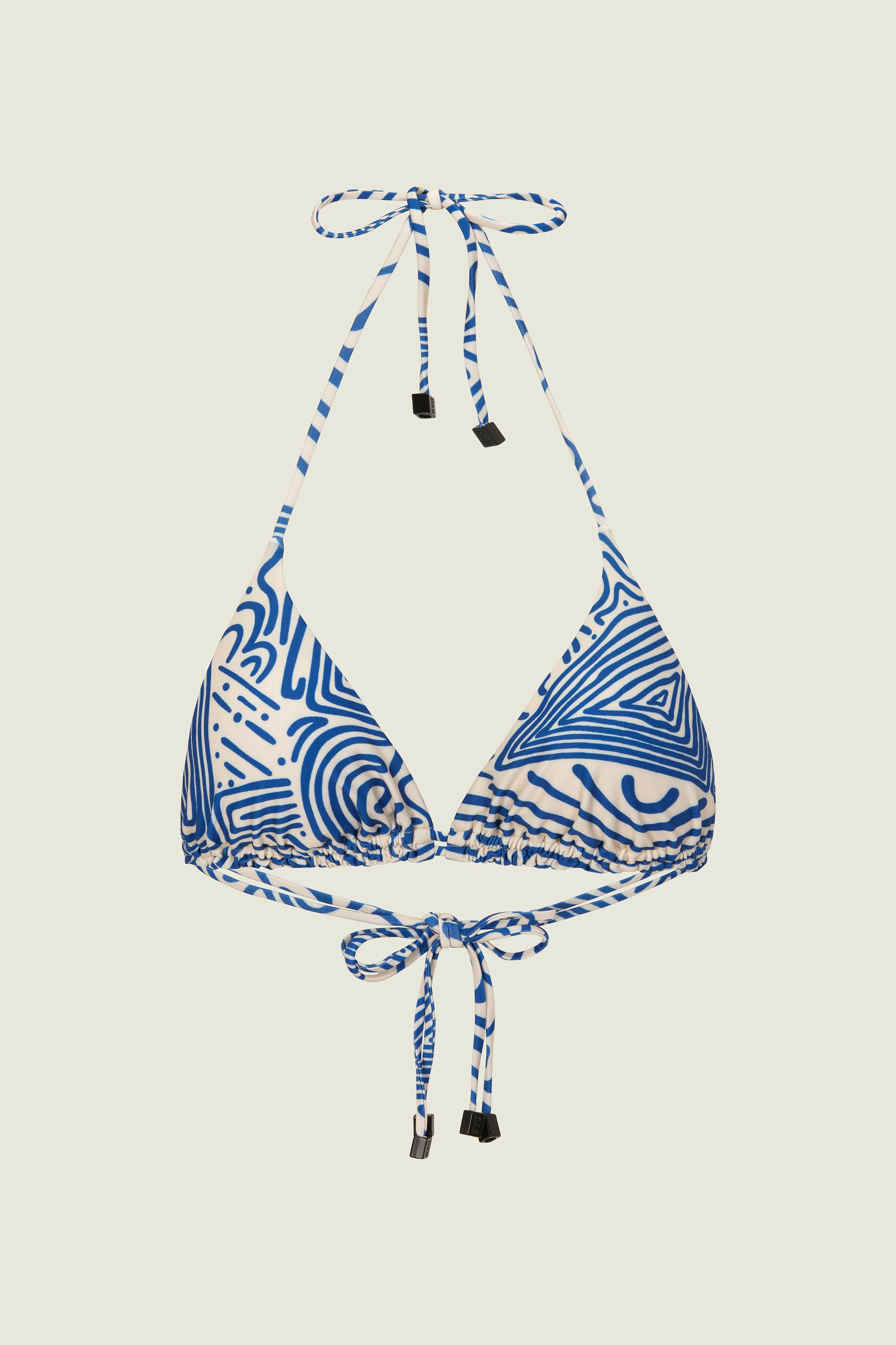 Classic triangle bikini top by Swedish brand OAS. Adjustable with two way ties and fully lined with removable padded cups.