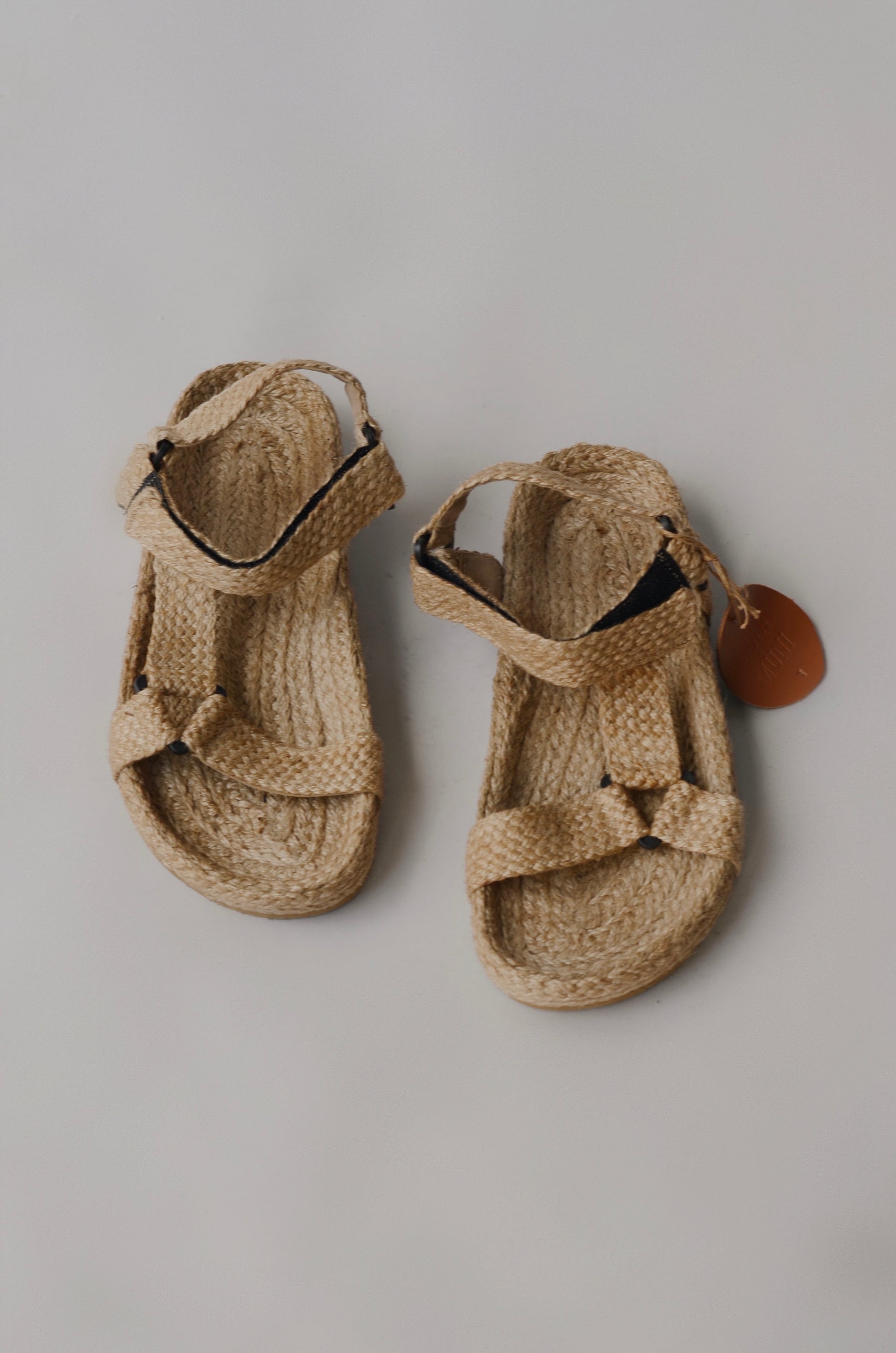 Unisex sandals by Muni Muni made with abaca rope featuring velcro straps for a secure fit.