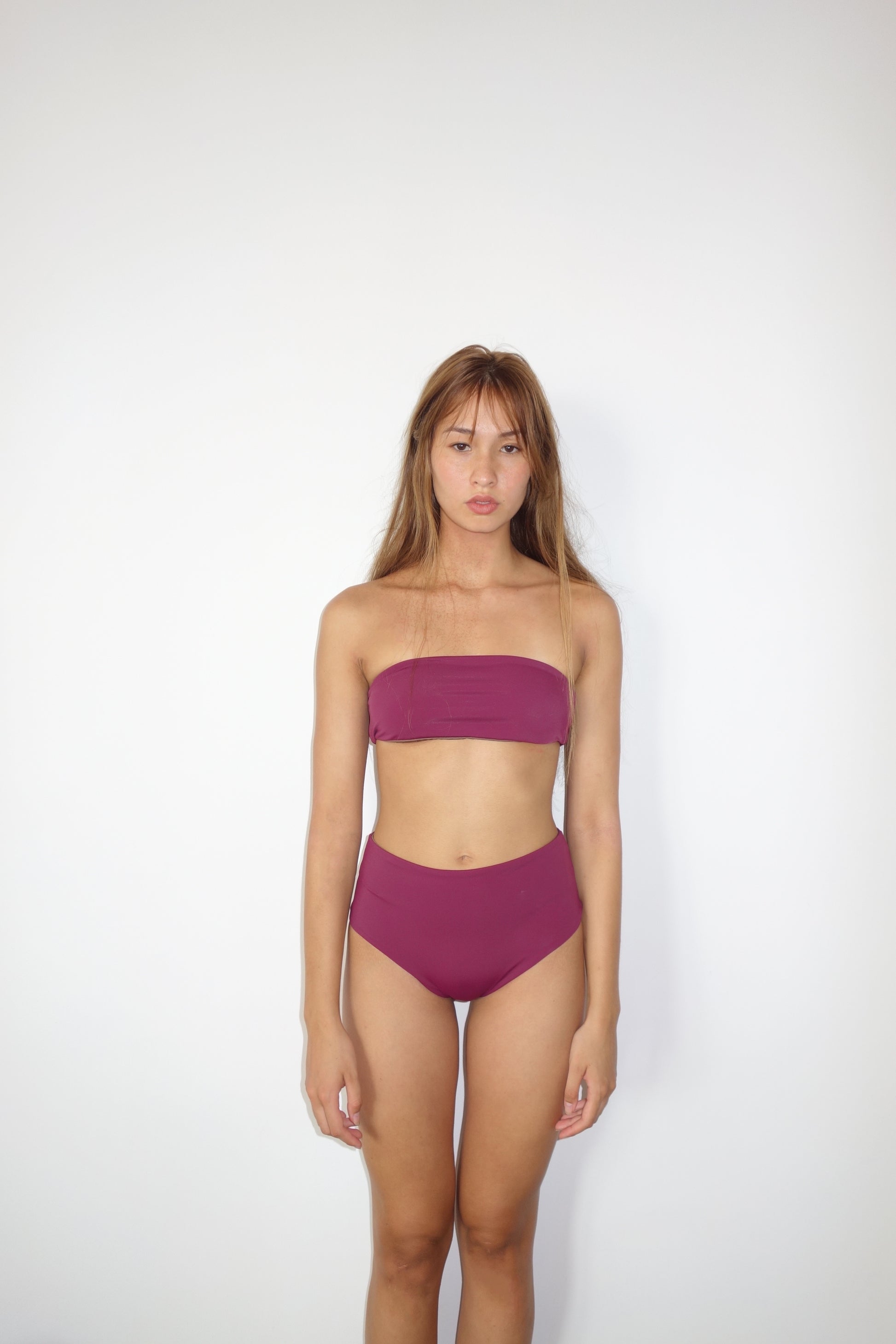 Elevate your beach style with the Sienna Bikini Set in a rich wine hue. This chic two-piece features a flattering bandeau top paired with high-waisted bottoms that enhance your silhouette while providing comfortable coverage. Perfect for sunbathing or a seaside stroll, this set combines timeless design with modern confidence.