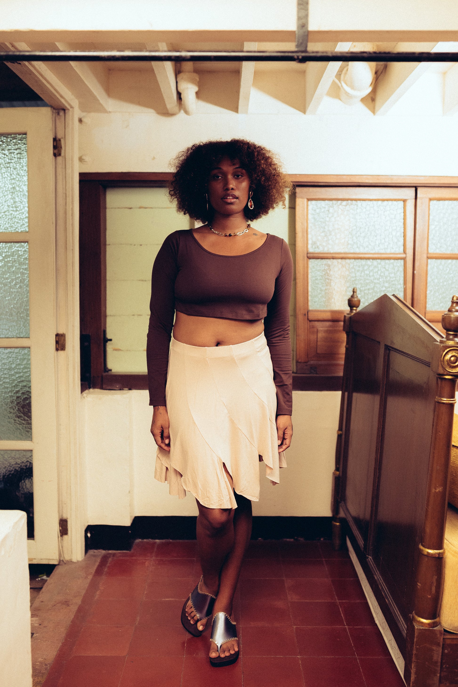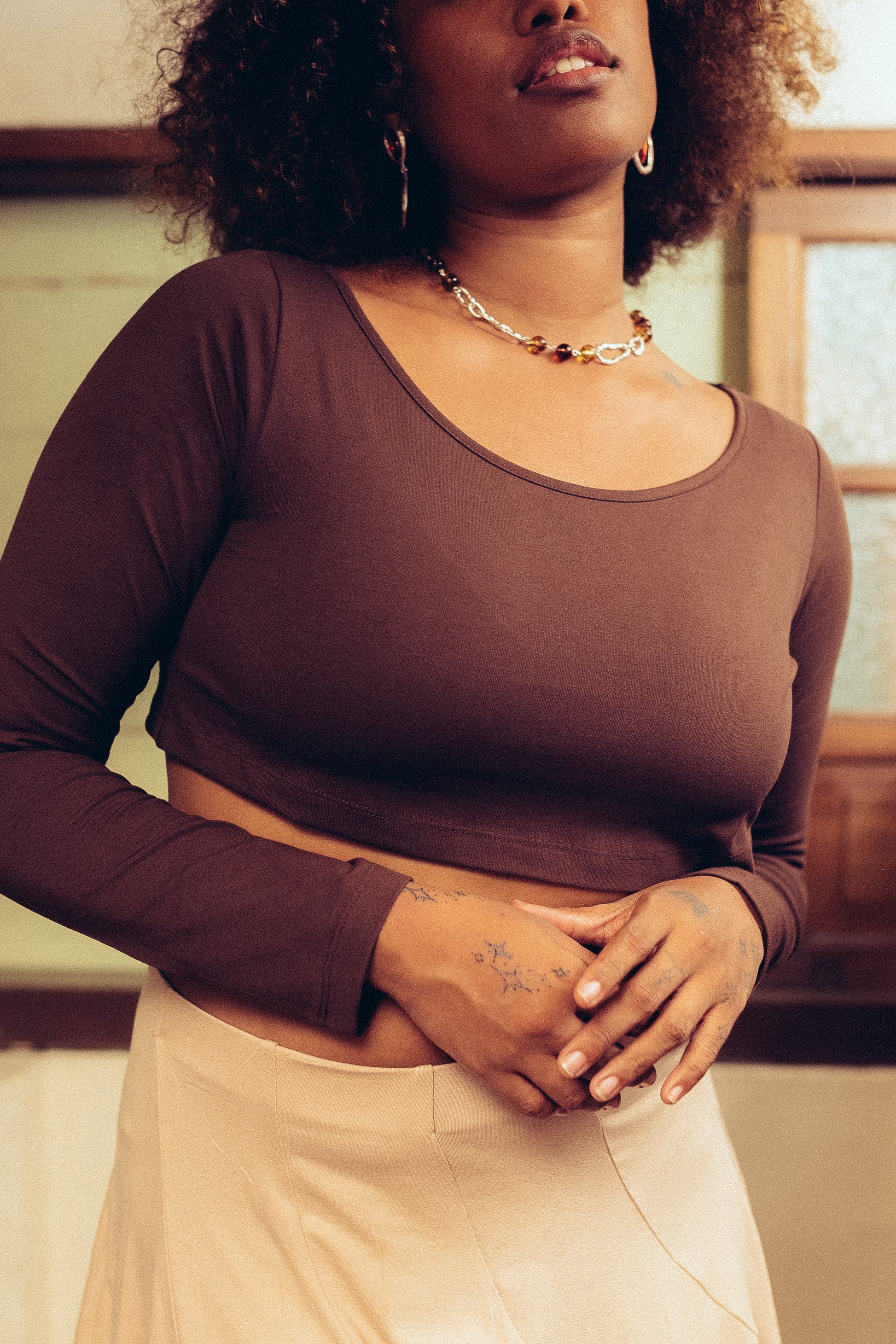 The Sophie Brown Top blends comfort with stretch in a premium fabric mix of 95% cotton and 5% elastane. This natural fiber blend keeps you cool while the elastane ensures a flexible fit that moves with you throughout the day. Perfect for casual wear that doesn't compromise on quality or comfort.