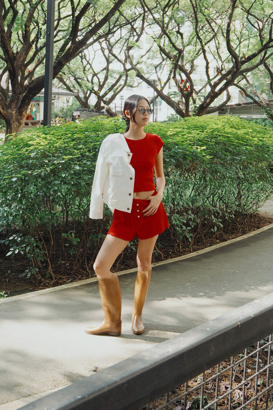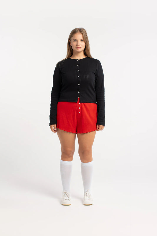 Cherry Pointelle Mini Shorts